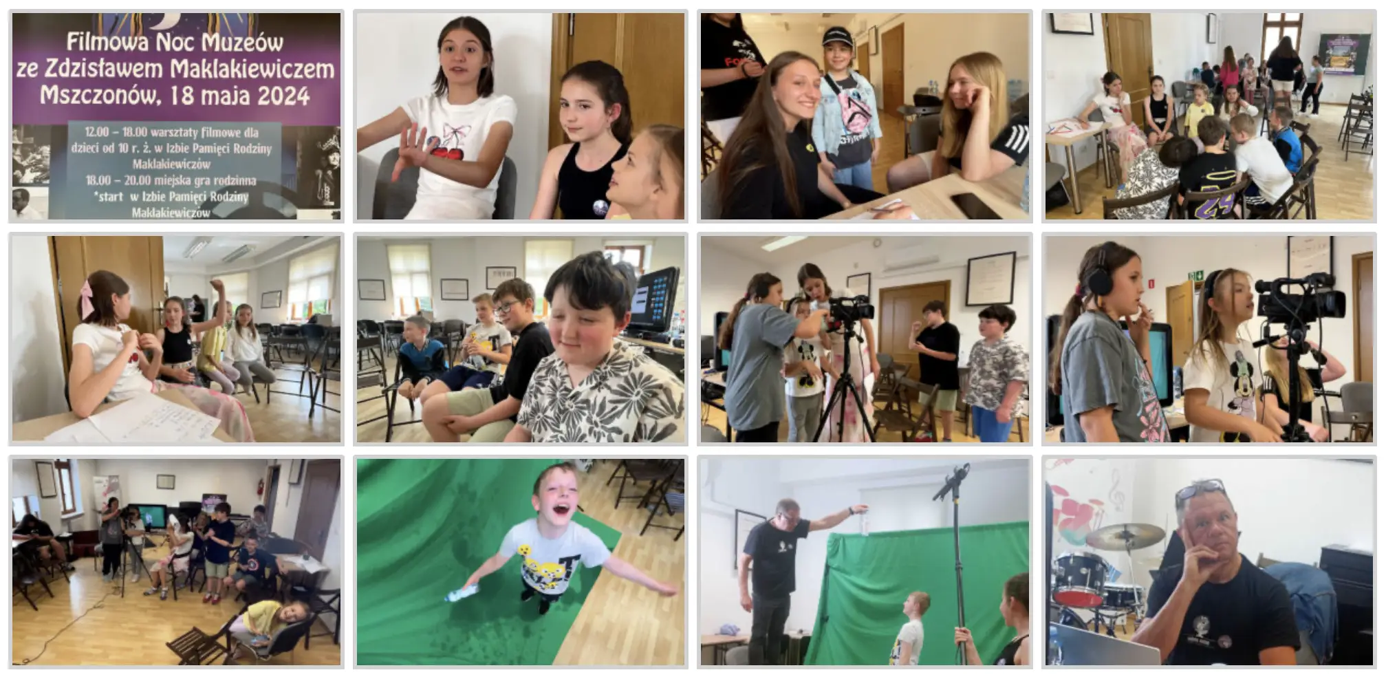 Filmowa Noc Muzeów ze Zdzisławem Maklakiewiczem w Mszczonowie to wyjątkowe warsztaty filmowe dla młodzieży. Uczestnicy poznawali tajniki realizacji filmowej, pracowali nad krótkimi scenariuszami i nagrywali własne etiudy, wcielając się w role operatorów, reżyserów i aktorów. Nocna, muzealna atmosfera dodała zajęciom filmowego klimatu i kreatywnej energii.
